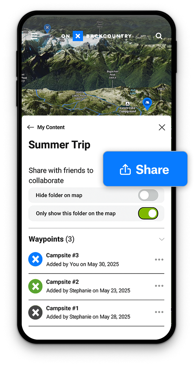 Whether you’re prepping for a multi-day backpacking trip, planning a hut tour, or just linking up for a weekend hike, Collaborative Folders help everyone contribute to the plan before the first step. Start your free trial and experience how onX Backcountry keeps everyone aligned before, during, and after the trip.