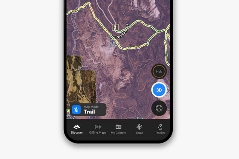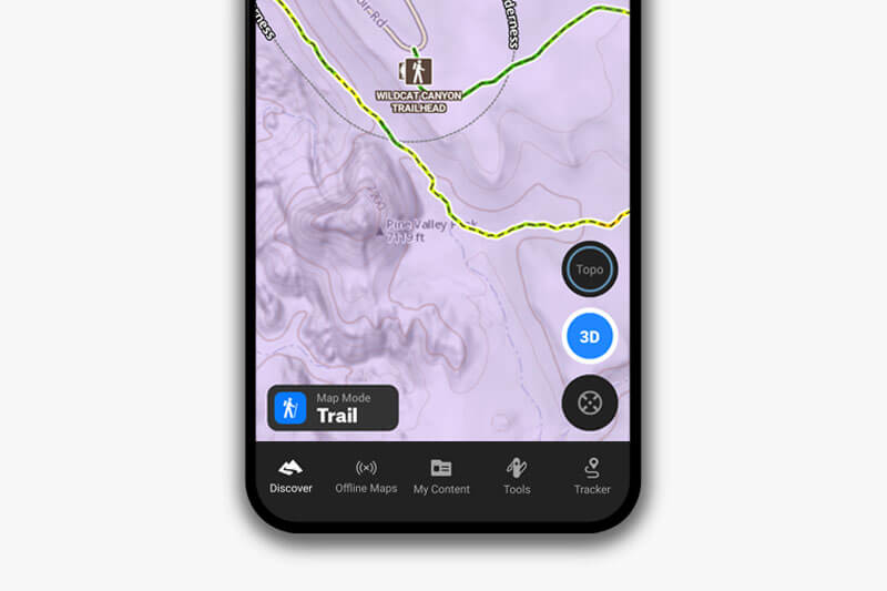 Trail Mode lets you view hiking trails and information relevant to active wildfires, historic wildfires, and air quality. The goal of this mode is to help you plan the perfect hike or backpacking route and put critical information at your fingertips to plan a safe and successful trip.