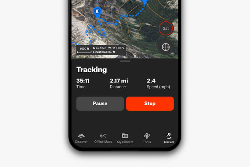 The Tracker feature allows you to record your path as you travel and saves it on your map, taking the guesswork out of backtracking so you can have the confidence to explore the unknown. You’ll also see the time the trip took, as well as distance and average speed. This data is saved along with the Track and can be viewed in the My Content menu.