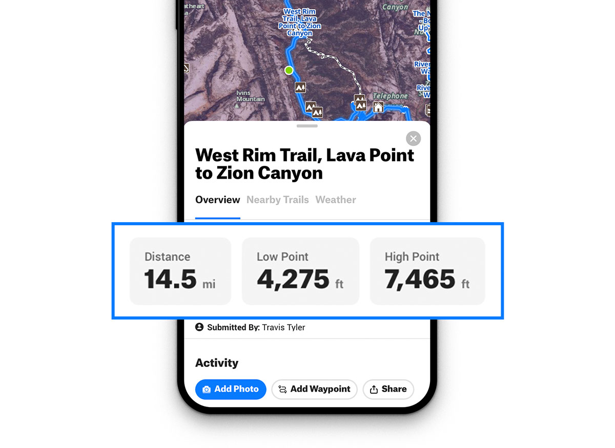 Stay in the know and hike with confidence with Trail Reports. Now you can view and submit current conditions and trail closures right in the App. Know where you can go and what conditions are with our Trail Report feature.