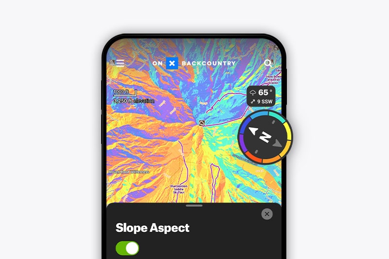 Absolutely integral to avalanche safety—slope aspect is the cardinal direction the slope of a mountain faces. Understanding this allows you to gauge how much sun exposure that slope experiences, how much snow it could hold, and how prone it is to slide. Learn More.