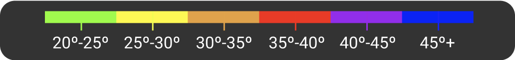 Our color gradient is designed for skiers because it includes the spectrum of angles most sought after by backcountry enthusiasts.