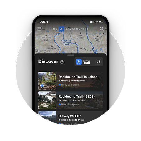 Find your next adventure with a free 7-day trial to onX Backcountry. With our free 7-day trial you’ll have access to guidebook quality trail descriptions, offline maps, custom waypoints, 3D and topographic maps, and more. Try onX Backcountry, free for seven days.