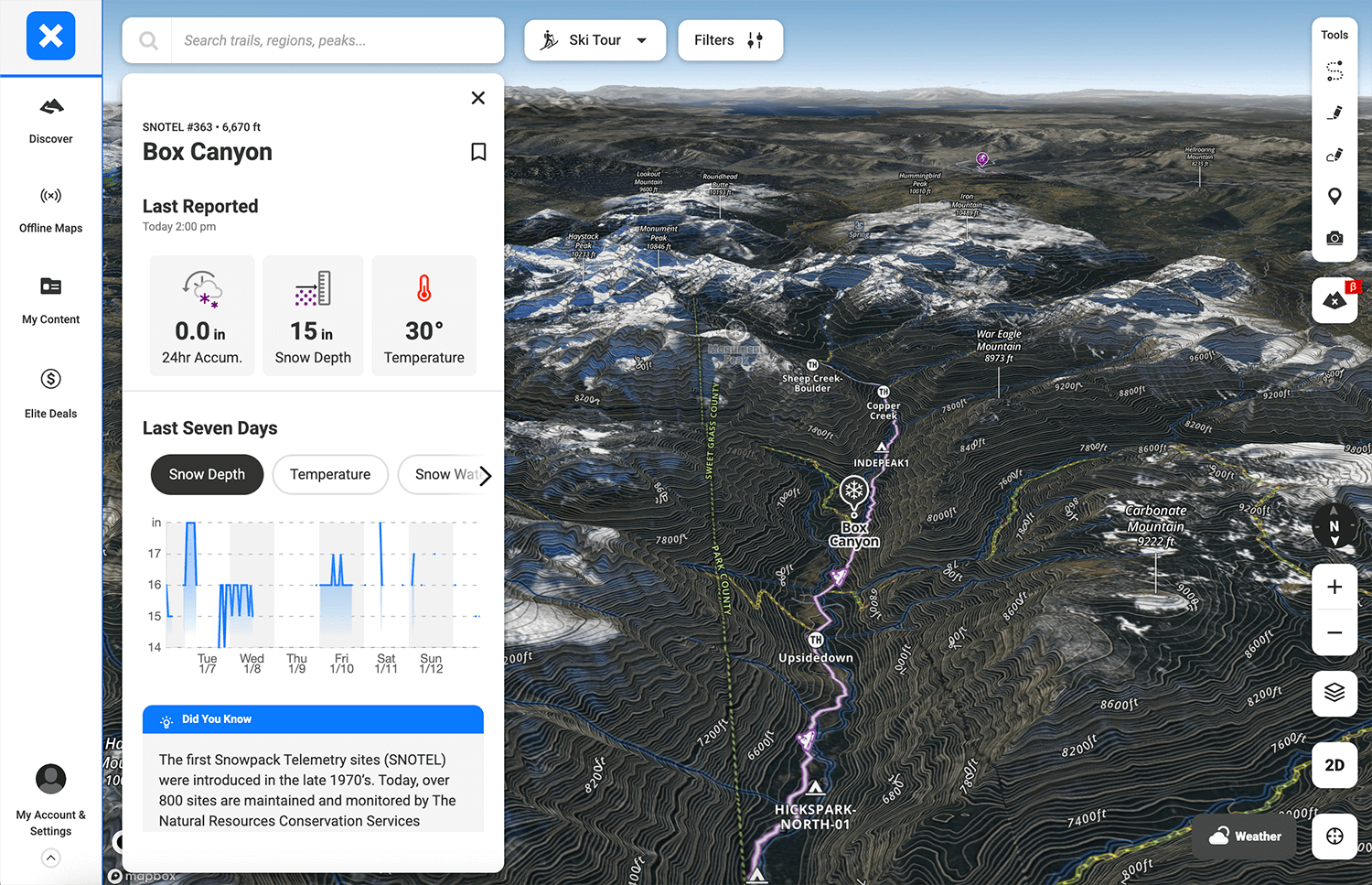 Access to Powder Project content is included with any active onX Backcountry Premium or Elite subscription, offering an expanded set of tools and information.