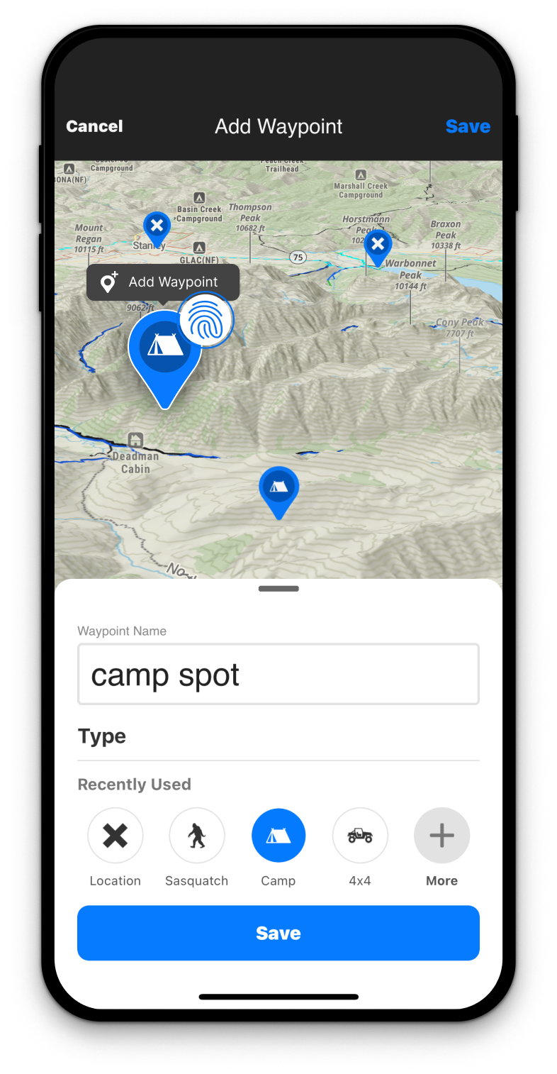 How-To: Tap and hold anywhere on the map to create a waypoint.