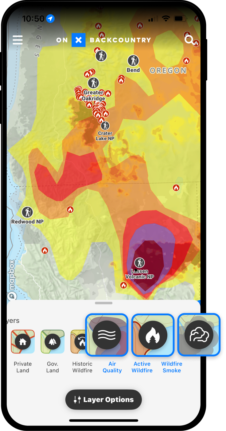 Tip: “Planning your next hike or ride? Use the Smoke Layer feature to locate areas with clear air, especially during wildfire season. It’s a quick way to ensure you’re heading into safe, breathable conditions.”