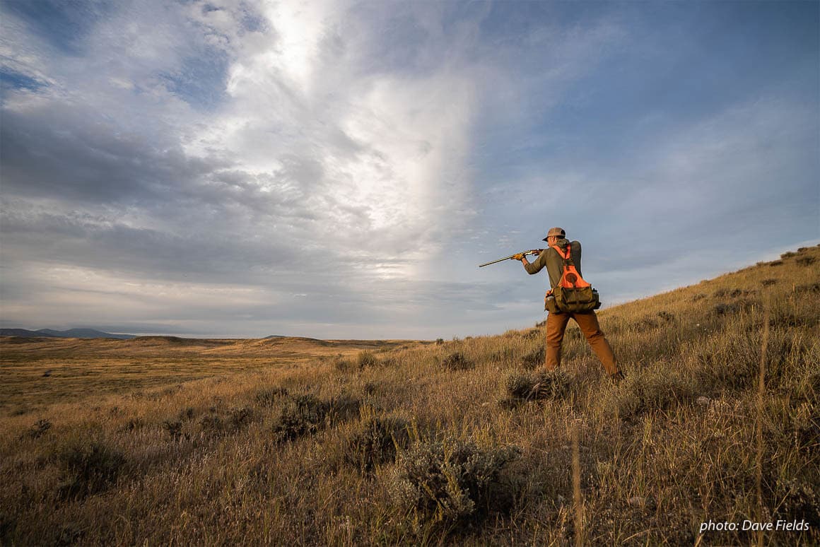 The project was a sage grouse hunt, tackled in conjunction with Billings-based hunter and dog breeder Brandon Moss, as well as various members of the Project Upland team. The group gathered to hunt sage grouse and sharptails, documenting both the conservation journey of sage grouse and the autumnal glory of eastern Montana. Dave and Jess were along on assignment to shoot photographs and video for onX—walking along with the hunters for several days, watching dogs work, and dodging porcupines and bull snakes, all while running around the sage-laden plains looking for the best photographic light.