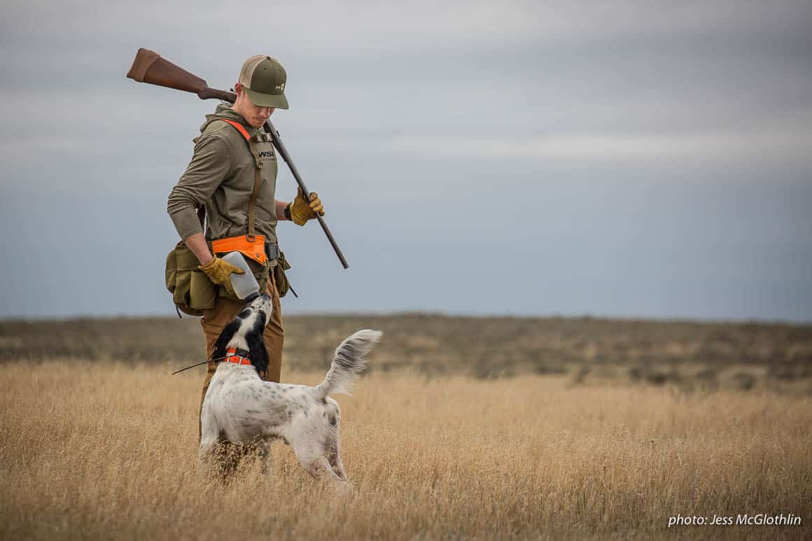 As the clouds and brisk wind gave way to a lighter breeze and spotty sunlight, Nick’s English setter, Hartley, and Garrett’s German shorthaired pointer, Surly, were hard at work canvassing terrain, leading the group into productive opportunities and, eventually, into Dave and Jess’ first sharp-tailed grouse. After capturing a few images, the team took a roundabout hike back to the trucks and parted ways. Both creatives headed back to Missoula, birds in the cooler, trying to make it home in time for the upcoming workday, while the rest of the team remained for a few more days of hunting.