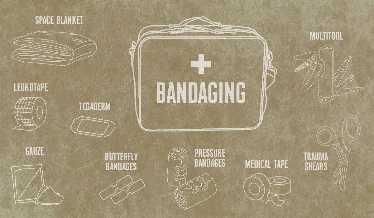 This list is in no way intended to be a final or complete guide, or to serve as a replacement for any sort of formal medical advice. Use it as a starting point to review your own first aid practices in the field. If something were to happen, are you prepared? Do you have the training necessary to manage wounds in the field? Perhaps your own medical kit is about ten years out of date?