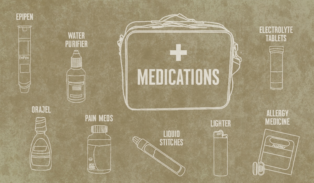 Medications: one of the most important—and ever-evolving—aspects of any medical kit. Know what you need for your own system; some people find certain medications more effective than others. While this list is highly individual, consider at least covering these categories: