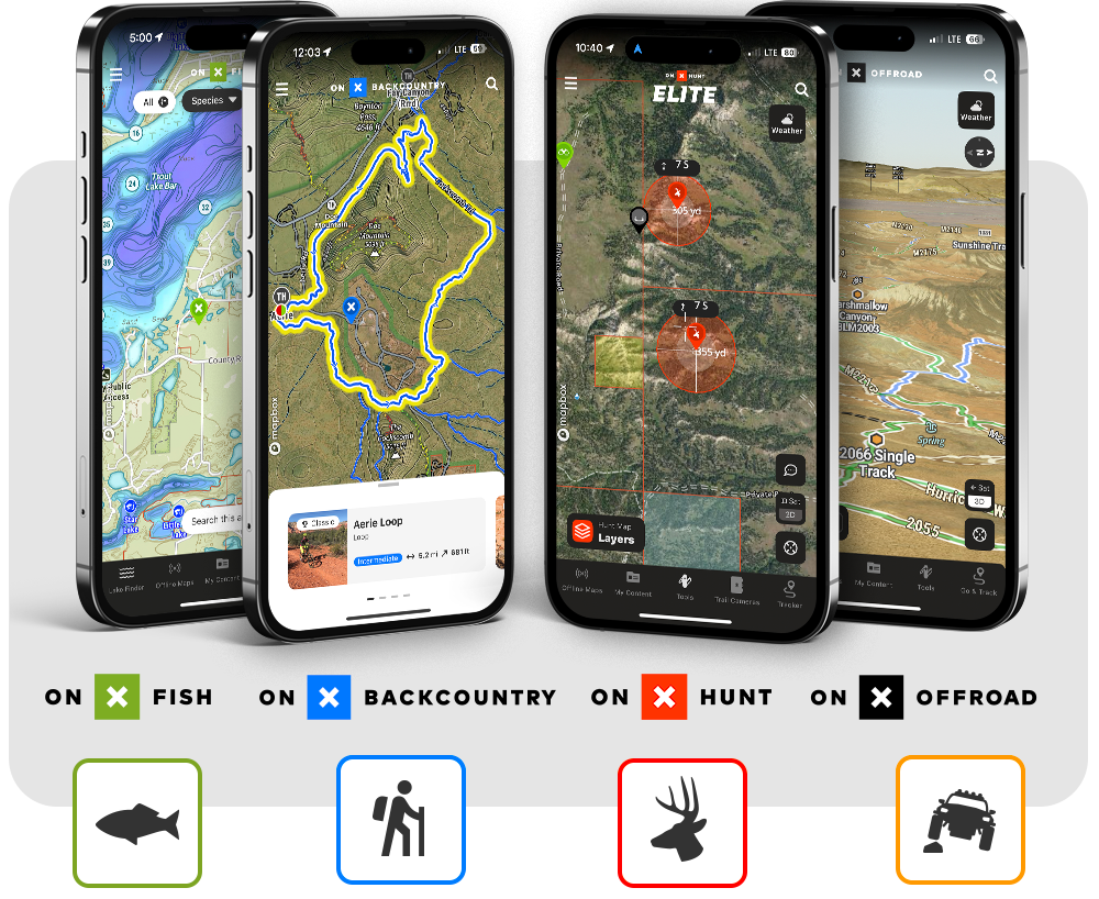 onX Apps are GPS navigation apps for hunting, backcountry skiing, fishing, hiking, off-roading, mountain biking, and climbing. They help you explore with confidence—and connect more deeply to the land, the people you share it with, and your own sense of adventure.