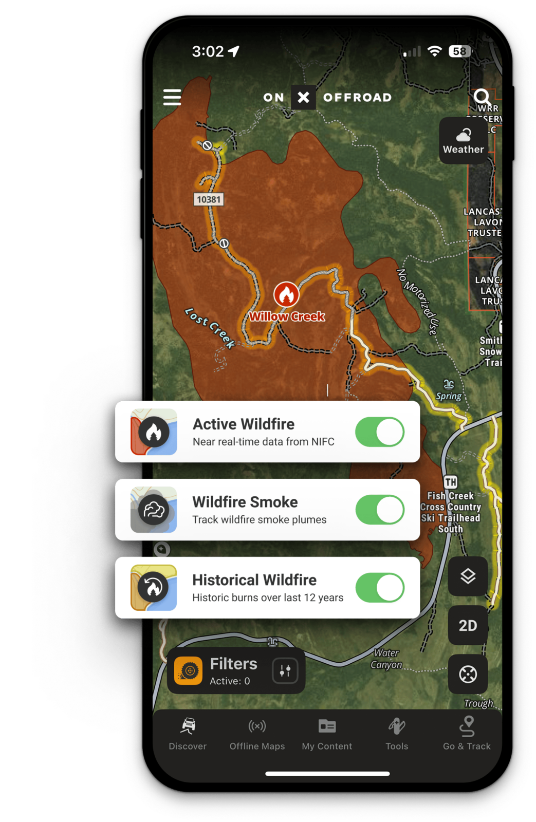 Reveal what other maps miss. See dynamic conditions like wildfire smoke, air quality, and precipitation radar; extend your understanding with historical wildfire and timber cut data; and get a clearer view of what’s in front of you with slope angle and trail slope info to put some numbers to the terrain.