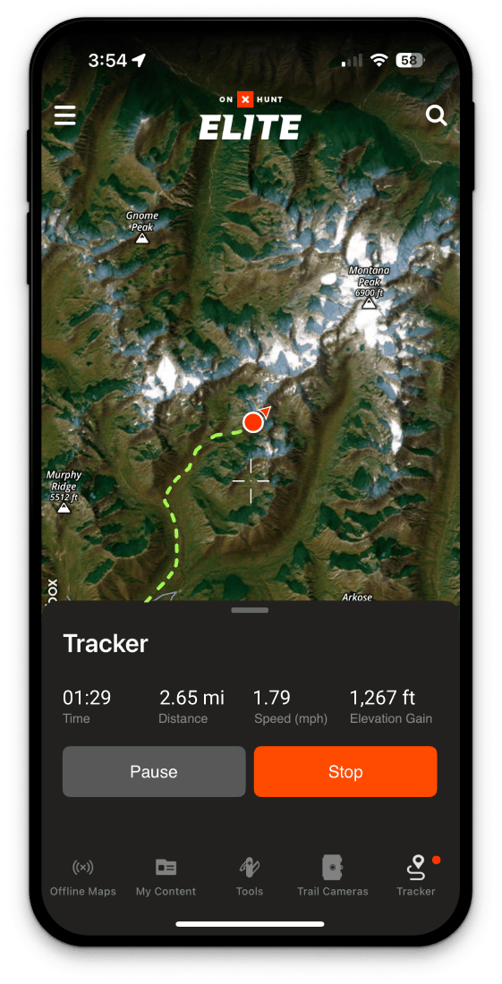 When you turn on Tracker, you’re leaving more than a trail of breadcrumbs. Show every mile, plus any surprise detours, on your map so you can not only track progress, you’ve always got a digital string tied to your rig back at the trailhead. And since GPS works anywhere with a view of the sky, Tracker can follow you far beyond cell coverage and pairs with Offline Maps to record it all on the map.
