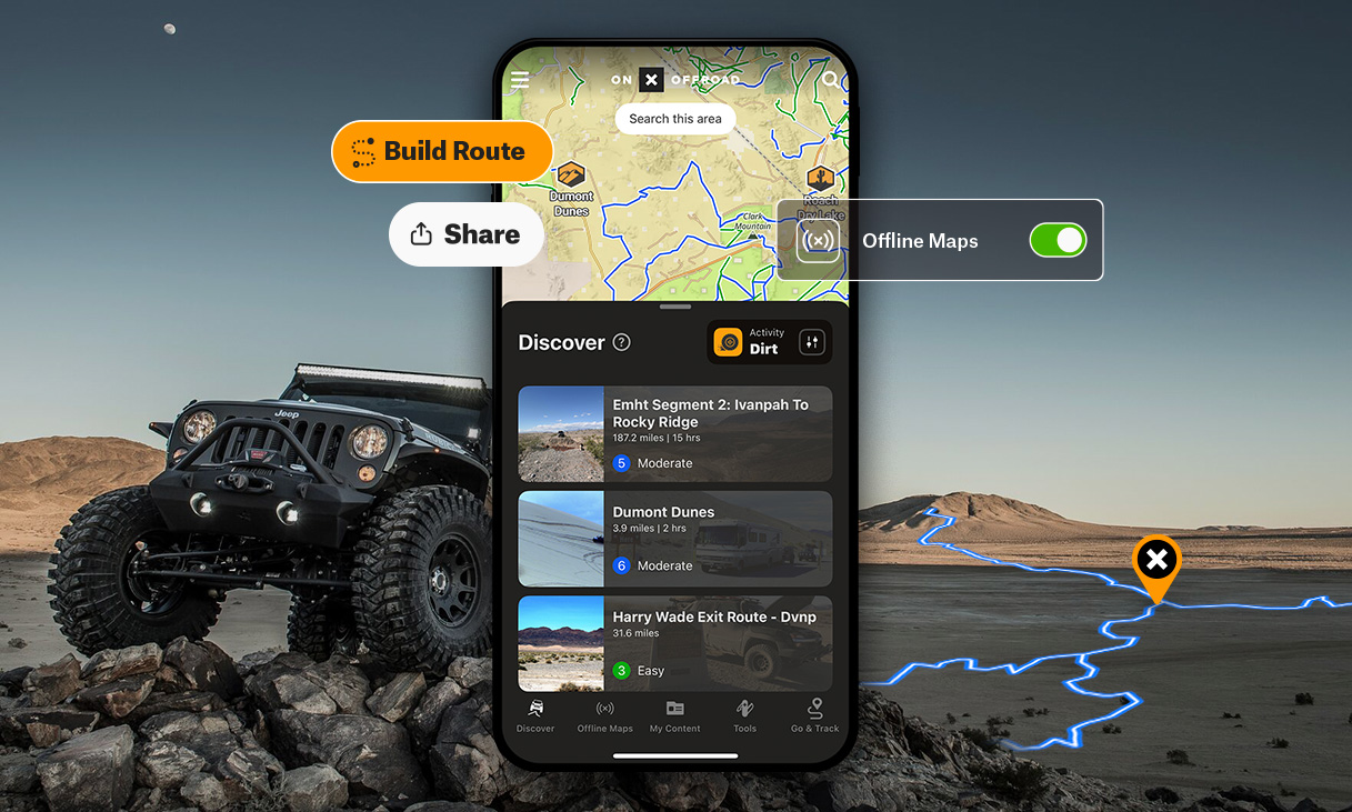 Two Wolf Foundation uses onX Offroad to build their overlanding adventure routes and seamlessly share trip details across the team. Use the App that’s veteran-approved.