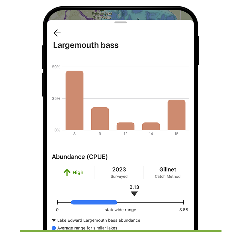 Speed up your scouting process and get on the water sooner by having the power of Fish Species Abundance Insights in your hands. Gone are the days of going to a lake blindly to “figure it out.” Use your time more effectively by quickly evaluating the abundance of multiple species compared to similar lakes as well as statewide averages.