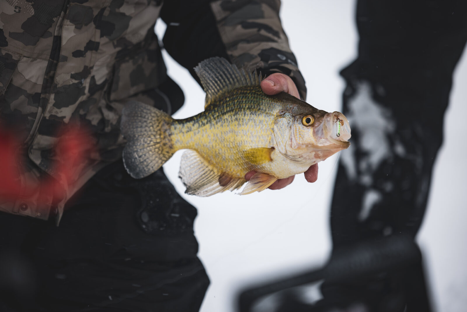 Freshwater gamefish have different strategies to survive the cold winter months, depending on the species and the specific body of water they inhabit. Most fish will move to deeper areas where the water is more stable in temperature, often staying just above freezing. As temperatures drop, fish become less active. Their metabolism slows and they require less food. They attempt to conserve energy and aren’t chasing much except when they really need the calories, and often condense feedings to certain times of the day (morning and evening).