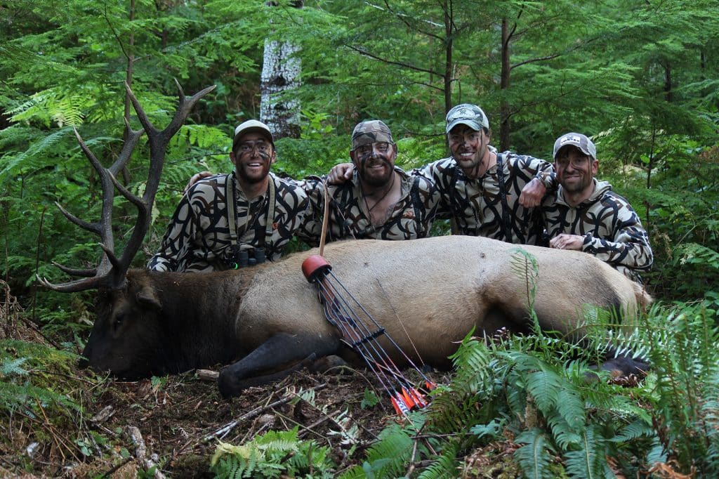 Hands down, elk with our bow. Growing up and cutting our teeth in the Coast Range of Oregon fuels us to chase elk anywhere we can find public land and OTC tags. Options are almost endless, especially when you have rut crazed bulls driving you. The intensity of having a screaming bull coming in at 20 yards cannot be duplicated and the rush is second to none. Come September, you will find us chasing Rocky Mountain or Roosevelt Elk.