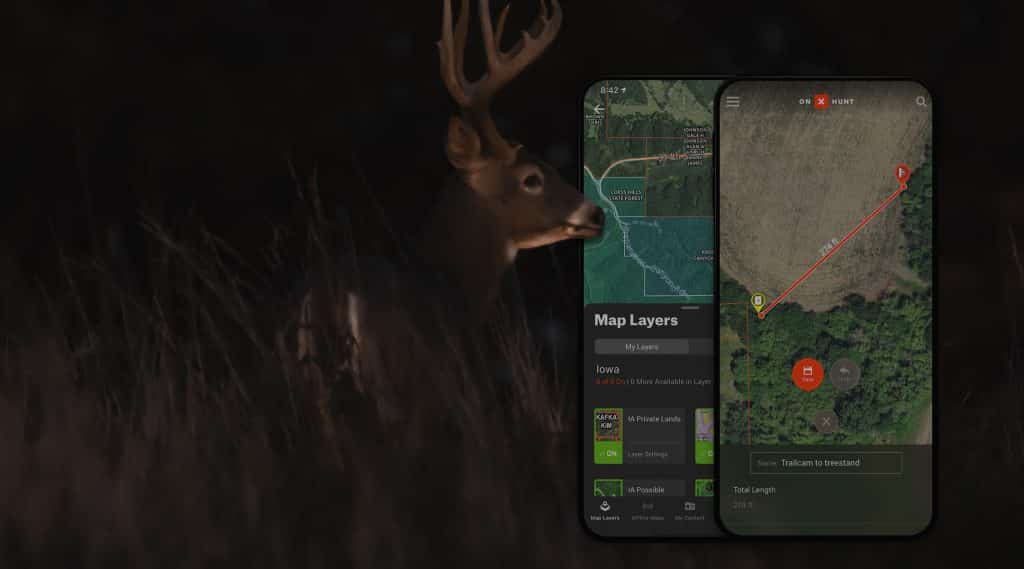 You should find all the information you’ll need for deer hunting since the onX Hunt App features 400,000+ miles of trails, 121 million private properties, 985 million acres of public land, 421 map overlays, and up-to-date landowner names and property boundaries.