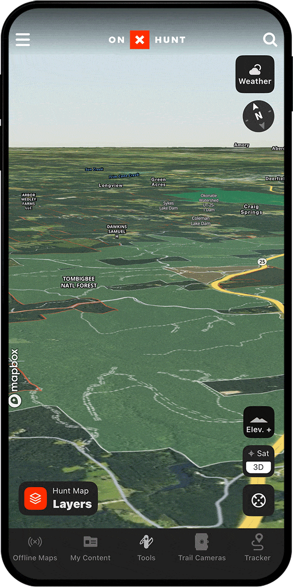 3D Maps are not currently available when using onX Hunt in Offline Mode.