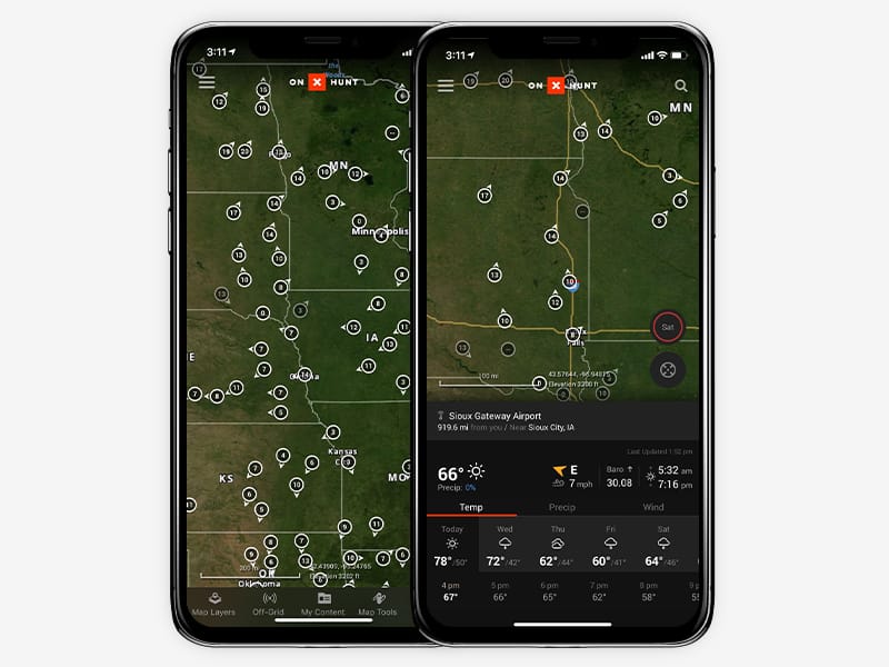onX Hunt’s hunting maps can be accessed even when your iPhone doesn’t have a cell signal. Simply tap the Offline Maps button from the main screen to download and save a map for later access. You can view areas as large as 150 miles wide with low resolution or as small as five miles wide with high resolution and detail.