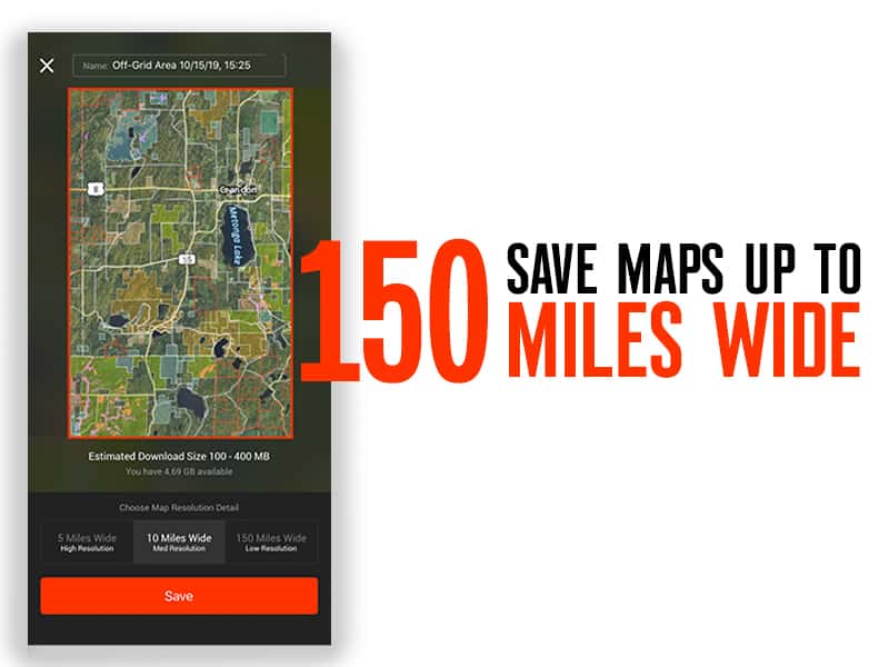 There’s no need for paper maps or GPS devices. Using your Android phone or iPhone and the onX Hunt App, you can access maps without a cell network. From sizes as small as five miles wide to as large as 150 miles wide, you can download and save public hunting land maps. And with our latest updates, you get crisper maps at higher zoom levels without pixelation.