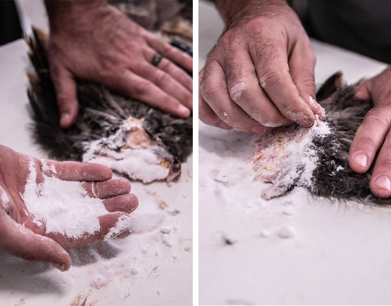 Once you’ve fleshed out the tail as much as possible, apply a generous amount of Borax to any exposed tissue. Make sure you rub it in well, lifting any loose bits of skin and getting both the front and the back side of the tail.