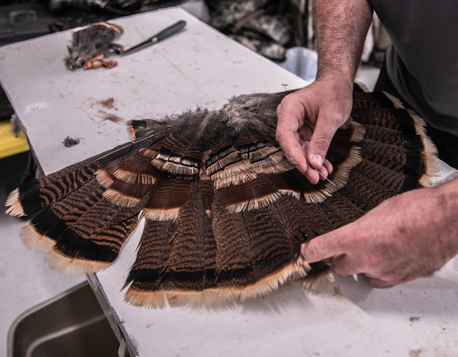 Once you’ve mounted the turkey fan and have been enjoying it for a year or two, you might need to do a little maintenance on it. As true for turkey tails as it is for other feathered taxidermy, you might start noticing some of these common issues: dust accumulation, broken and disengaged barbs and barbules, whole or partial feather losses, or pest damage.