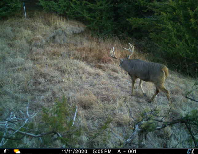 Bucks will often travel just above that top line of topography scent checking for estrus does. This camera location often sees a major uptick in buck traffic in the last 10 days of October through the middle part of November.