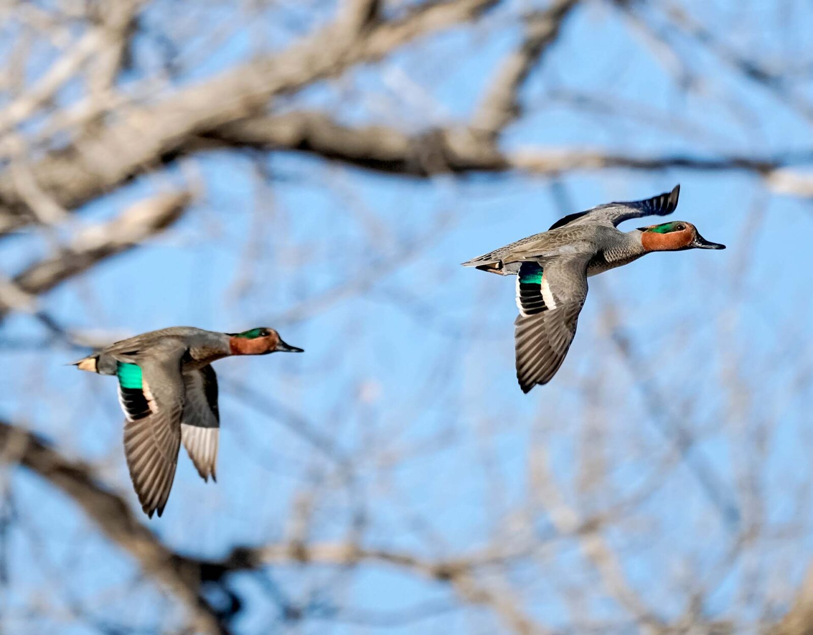 Green-winged teal become the dominant teal species as fall progresses. They are more tolerant of cold and pressure and will decoy reliably into mixed-species spreads. They often fly fast, low, and erratically, so be ready—they can appear suddenly and buzz the decoys without circling.