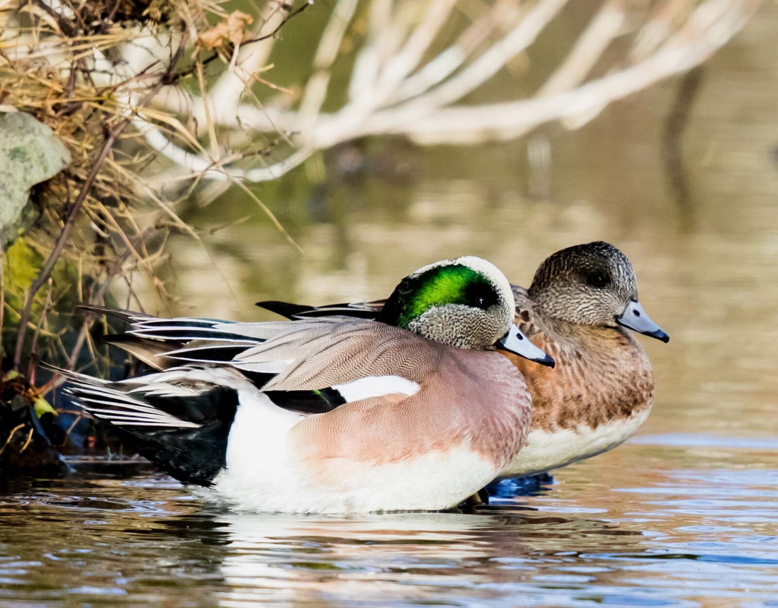 They also exhibit a unique foraging behavior biologists call kleptoparasitism, often stealing vegetation from coots and other waterfowl. As the season progresses and pair bonds begin to form, wigeon often shift to quieter loafing areas or less pressured feeding sites.