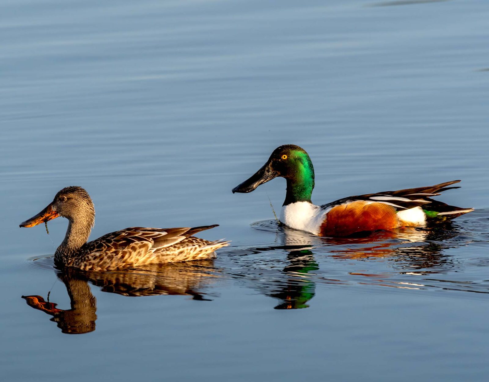 In the late season, shovelers often concentrate in nutrient-rich water bodies with minimal disturbance. They may raft in the middle of impoundments, aquaculture ponds, or treatment cells and make short flights between feeding and loafing areas. As always, concealment is critical. Shovelers may not be all that wary, but they will flare from unnatural movement or shiny blinds.