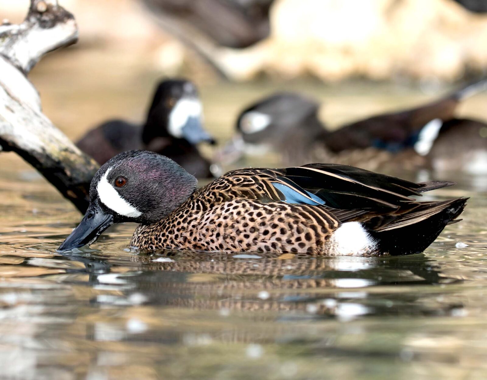 Blue-winged teal are early migrants and tropical winterers, often gone from northern latitudes before the regular duck season begins. Ecologically, they are more similar to northern shovelers than green-winged teal, favoring warm climates, feeding heavily on aquatic invertebrates, and using shallow wetlands with dense vegetation. Their early movements are driven by a need to avoid cold weather and maintain access to soft-bodied prey.