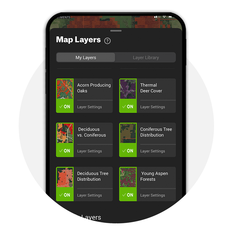 Know exactly which tree types you’re looking at on aerial imagery across the country. The Tree Data Layer helps you locate acorn-producing oaks, young aspen stands, thermal deer cover, and more to take the guesswork out of what the landscape will hold for food sources, cover, and diversity.