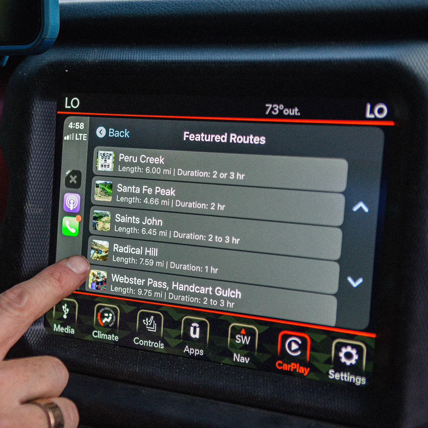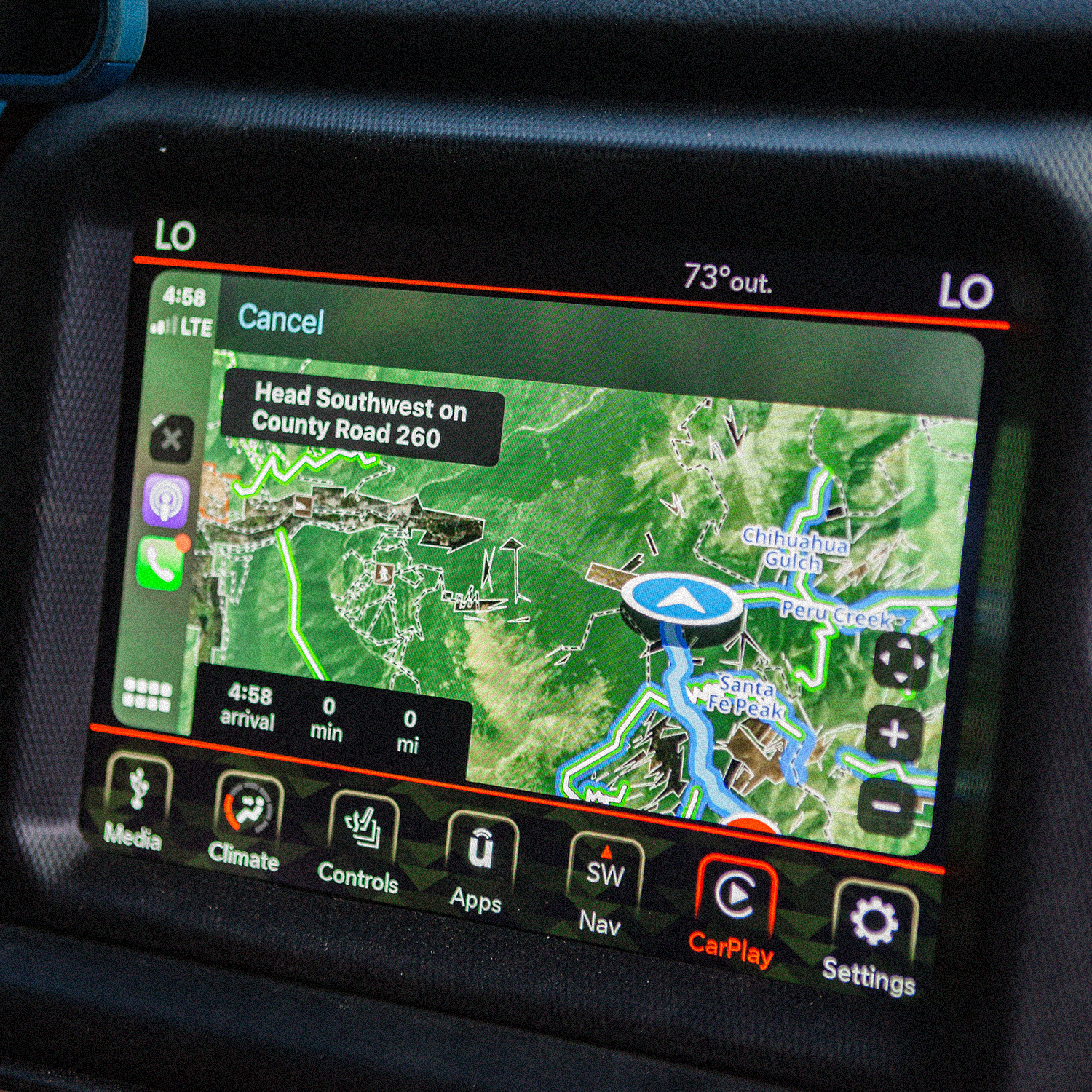 onX Offroad paired with Apple CarPlay provides you with all of the information you need, without having to use your phone while driving. This means you can pay more attention to the trail and the adventure ahead. Simply plug your smartphone into your vehicle, connect with Apple CarPlay, and go!
