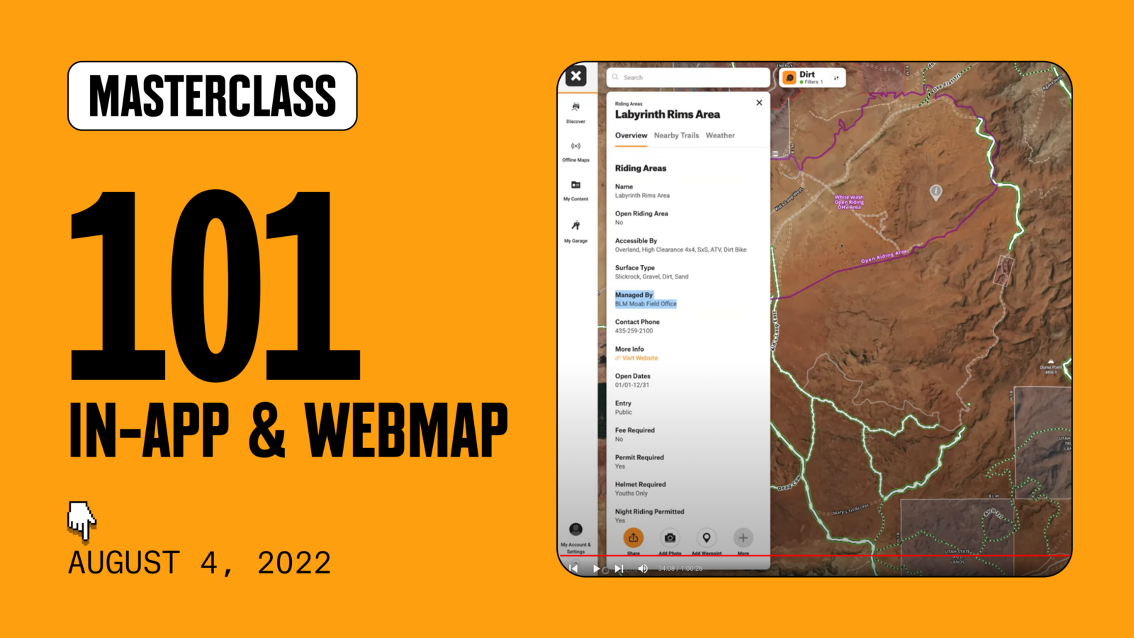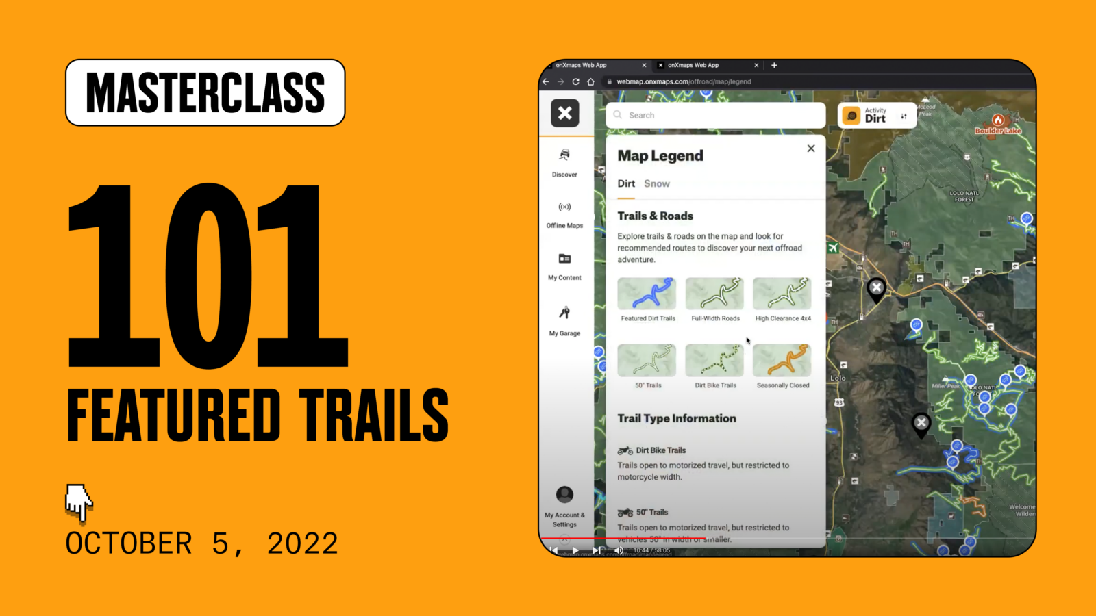 Make sure you have an onX Offroad account set-up before the class (a Basic account is FREE!), so you can follow-along in the app. Sign up for a free membership here.