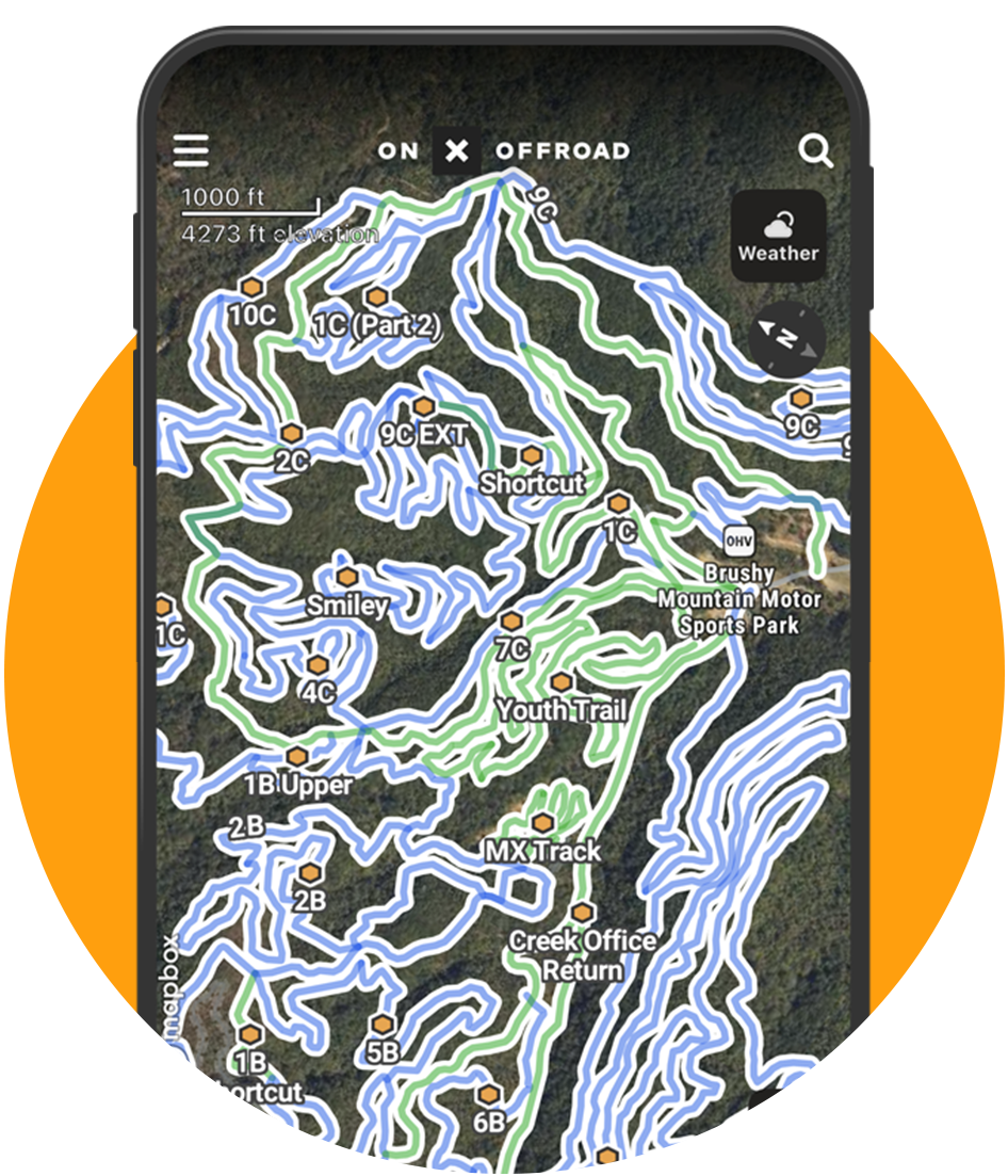 Upgrade your off-road adventure courtesy of our collaboration with Brushy Mountain Motorsports Park! onX Offroad is proud to partner with Brushy Mountain Motorsports Park to bring you an elevated off-road navigation experience. From detailed maps and trail data to real-time GPS tracking, explore Brushy Mountain Motorsports Park using the onX Offroad App and gain access to the tools off-roaders need to explore the great outdoors with increased confidence.