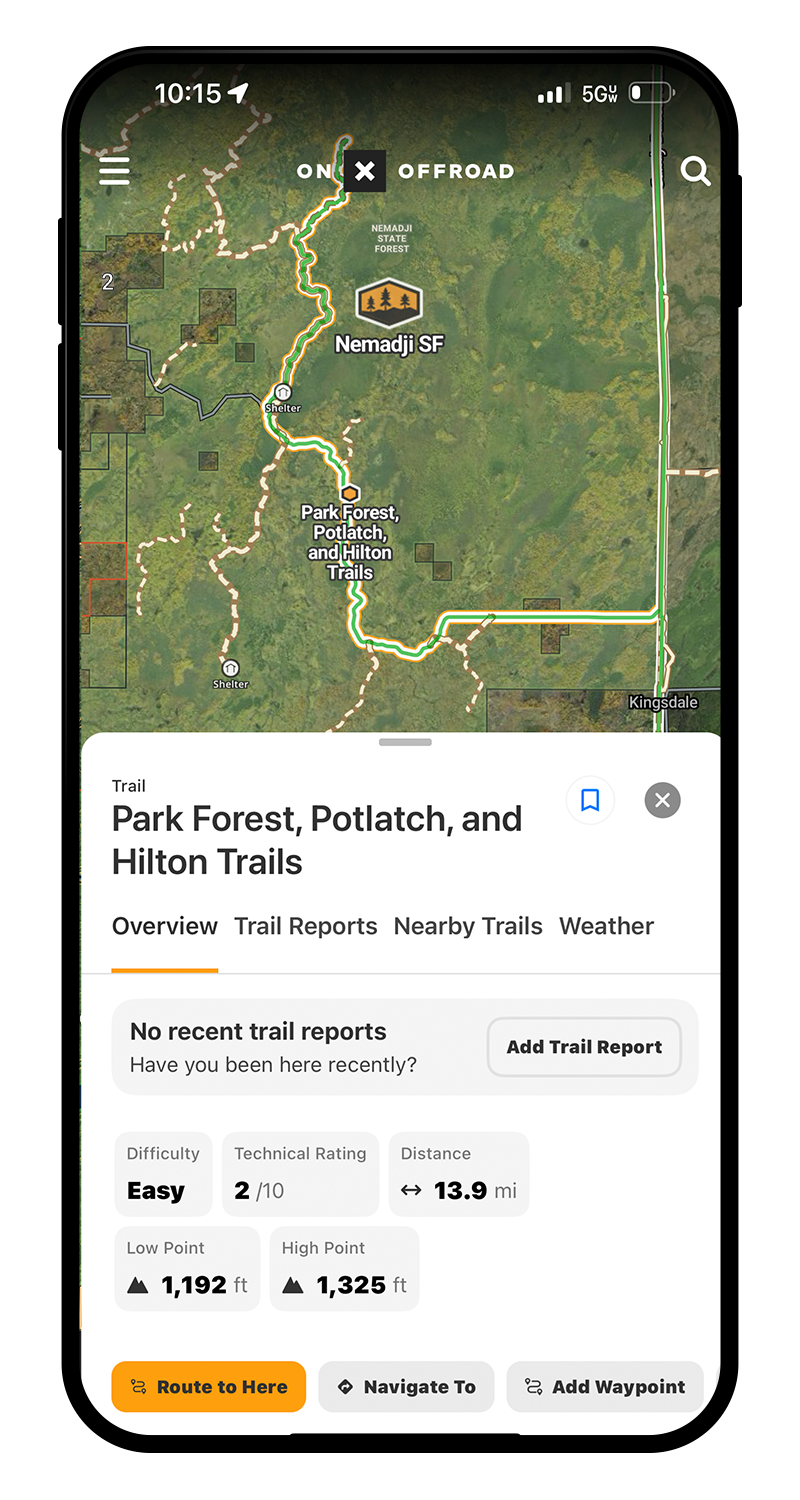 Find trails for SxS, 4×4, ATV, dirt bike, and snowmobiles across the nation. Tap any trail for details such as open and close dates, difficulty ratings, and trail photos. View 500K rec points like campsites, trailheads, and boat launches. Learn More