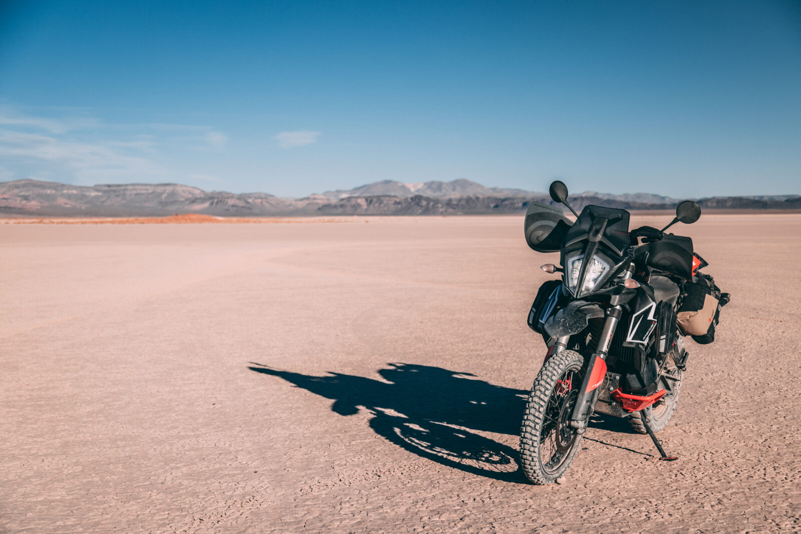 Late fall through early spring is the ideal time to embark on this ride. This route is very weather and fuel-dependent, and fuel range is a very important factor throughout, with at least a 200-mile range recommended for each bike attempting the ride. Carrying fuel, even if you are sure of your range, is recommended in case of a re-route or an unexpected situation. Having off-road capable tires, luggage, a skid plate, hand guards, crash bars, proper air pressure, and good riding and camping gear are a must. It’s also essential to carry the proper tools and know how to use them in these remote areas. We recommend packing spare tubes for both tube and tubeless setups. Cell service is limited, so be sure you let people know where you are going and have a PLB (Personal Locator Beacon) in case of emergencies. Make sure you also have a good GPS system or program, such as onX, with you and have all the necessary maps downloaded beforehand.